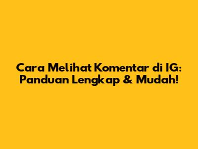 Cara Melihat Komentar Di IG: Panduan Lengkap & Mudah!