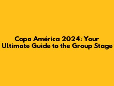 Copa América 2024: Your Ultimate Guide To The Group Stage