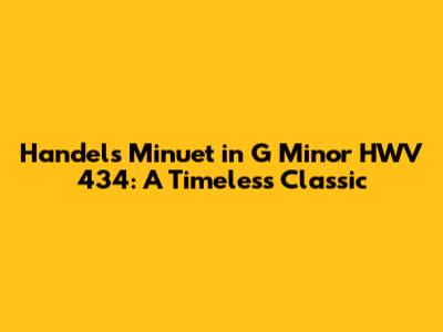 Let's dive into the world of classical music with one of the most recognizable and beloved pieces ever written: Handel's Minuet in G Minor HWV 434. This isn't just some old tune; it's a masterpiece that has resonated through centuries, capturing the hearts of listeners and inspiring countless musicians. Whether you're a seasoned classical music aficionado or just starting to explore this genre, you're in for a treat.