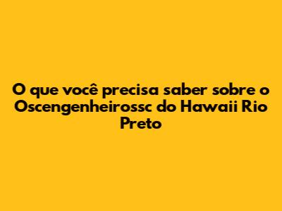 O Que Você Precisa Saber Sobre O Oscengenheirossc Do Hawaii Rio Preto
