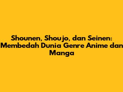 Guys, dunia anime dan manga itu luas banget, kan? Penuh dengan cerita seru, karakter unik, dan gaya visual yang bikin kita betah berlama-lama. Tapi, pernahkah kalian bingung membedakan antara genre-genre seperti shounen, shoujo, dan seinen? Nah, artikel ini bakal jadi panduan lengkap buat kalian semua! Kita akan bedah habis perbedaan mendasar dari ketiga genre ini, biar kalian makin paham dan nggak salah pilih lagi. Jadi, siap-siap buat menyelami dunia anime dan manga yang lebih dalam!