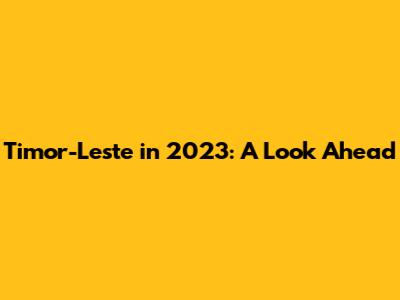 Timor-Leste In 2023: A Look Ahead