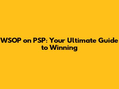 WSOP On PSP: Your Ultimate Guide To Winning